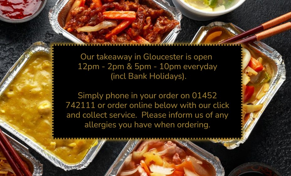Most of our dishes contain garlic, soya, gluten, cooking wine, sesame oil if you have any allergies to these products, please inform us before before ordering.